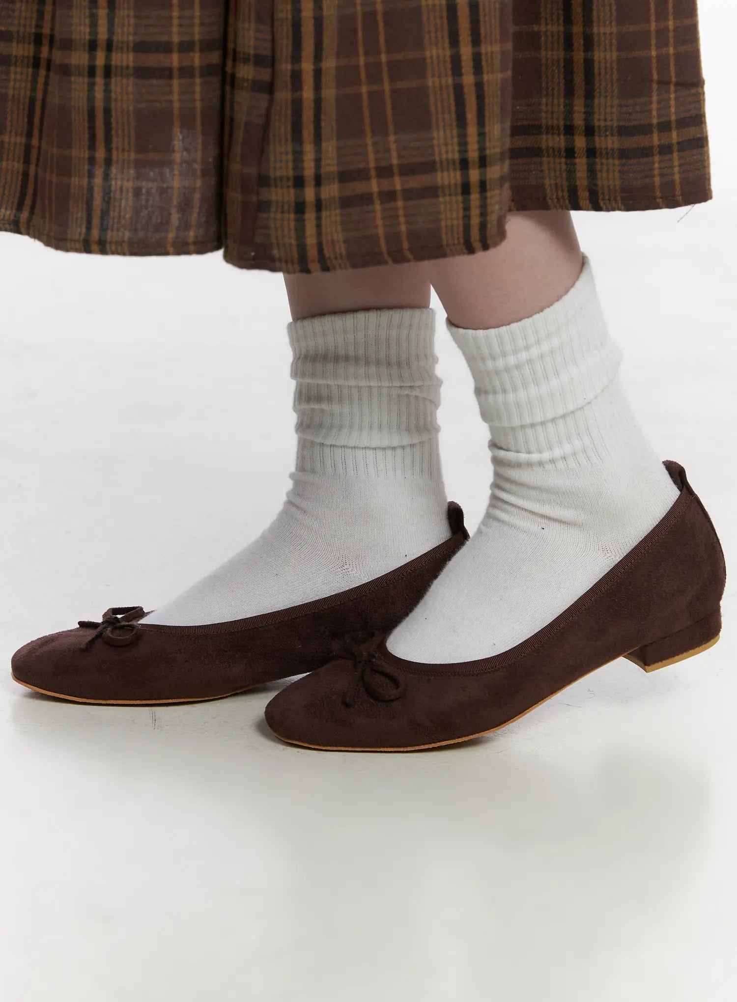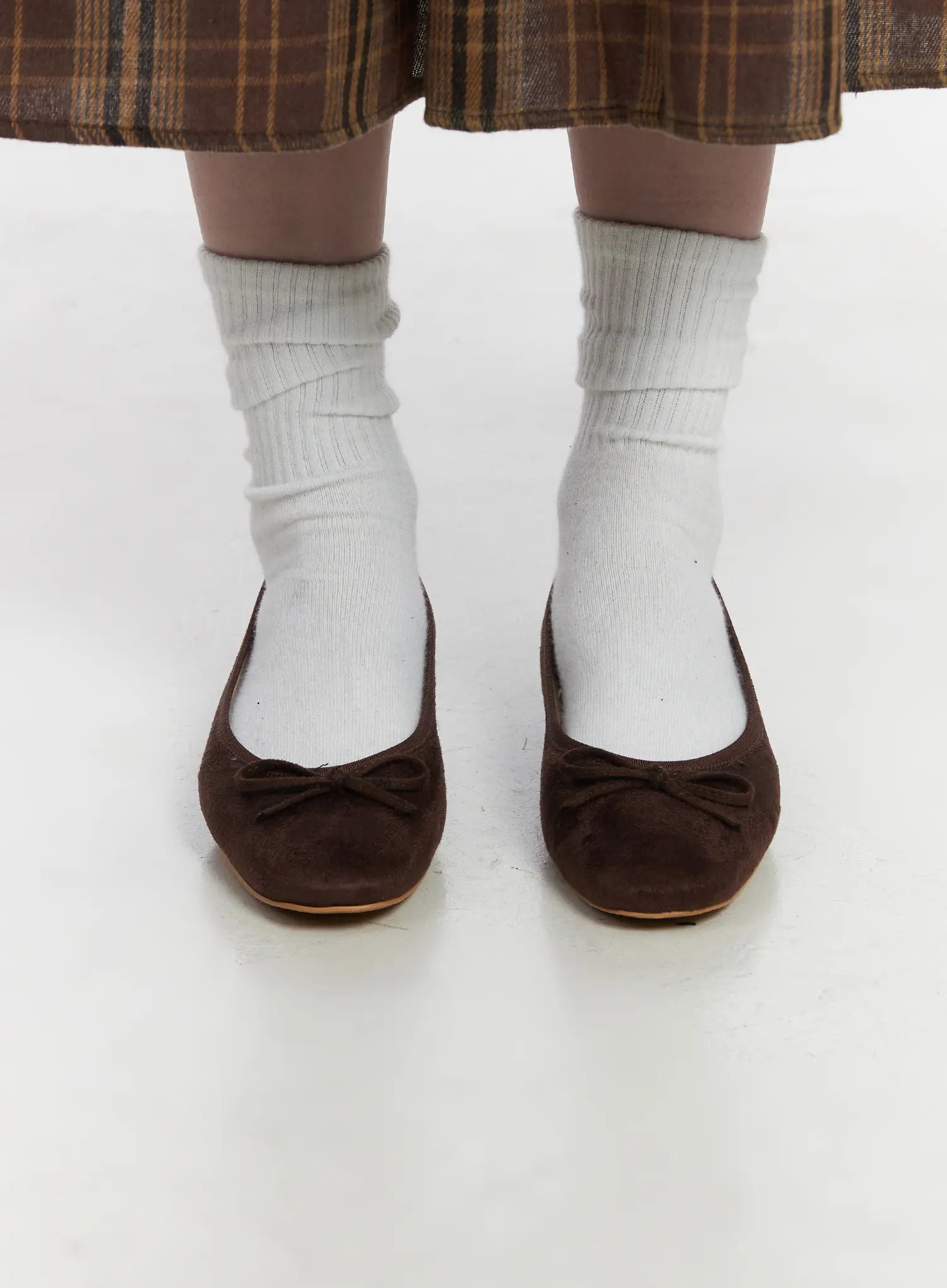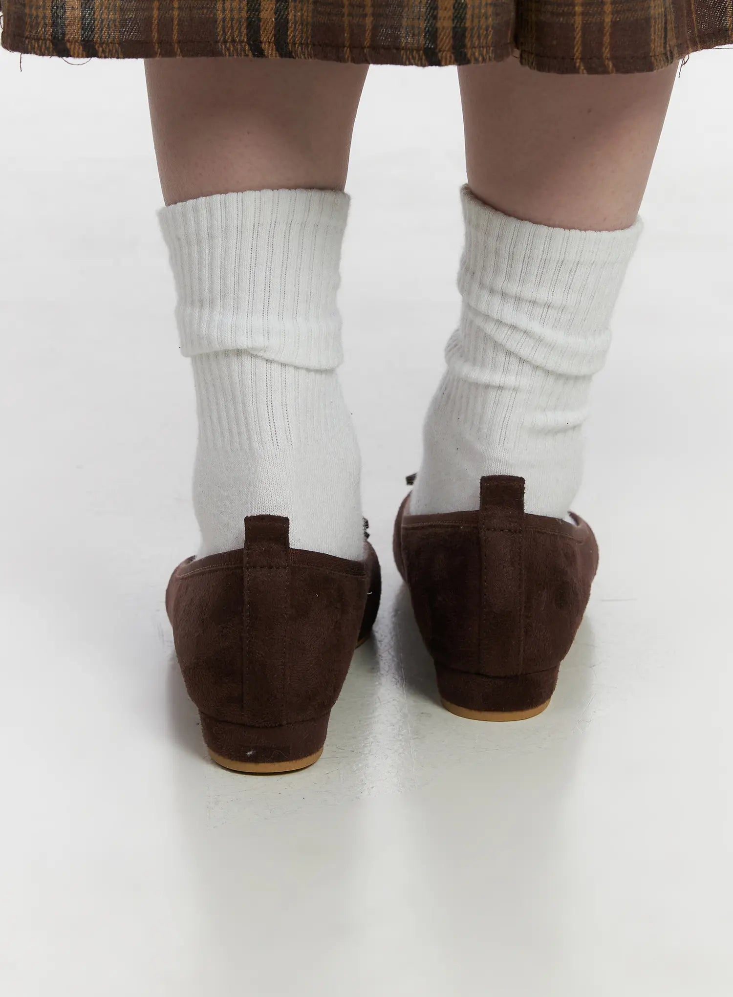 Suede Brown Ribbon Flats CJ512