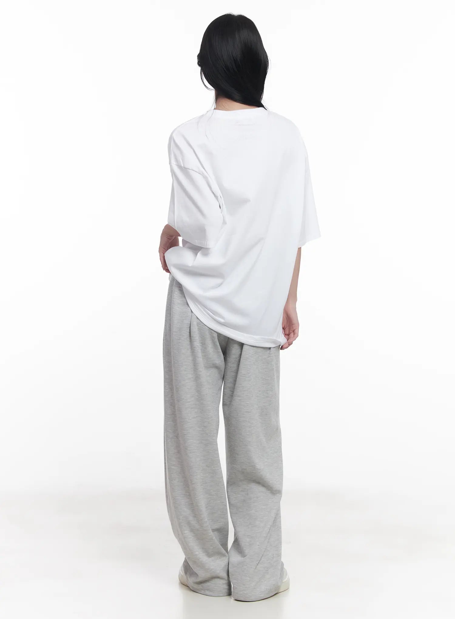 Model is wearing size M/L and the color White.
