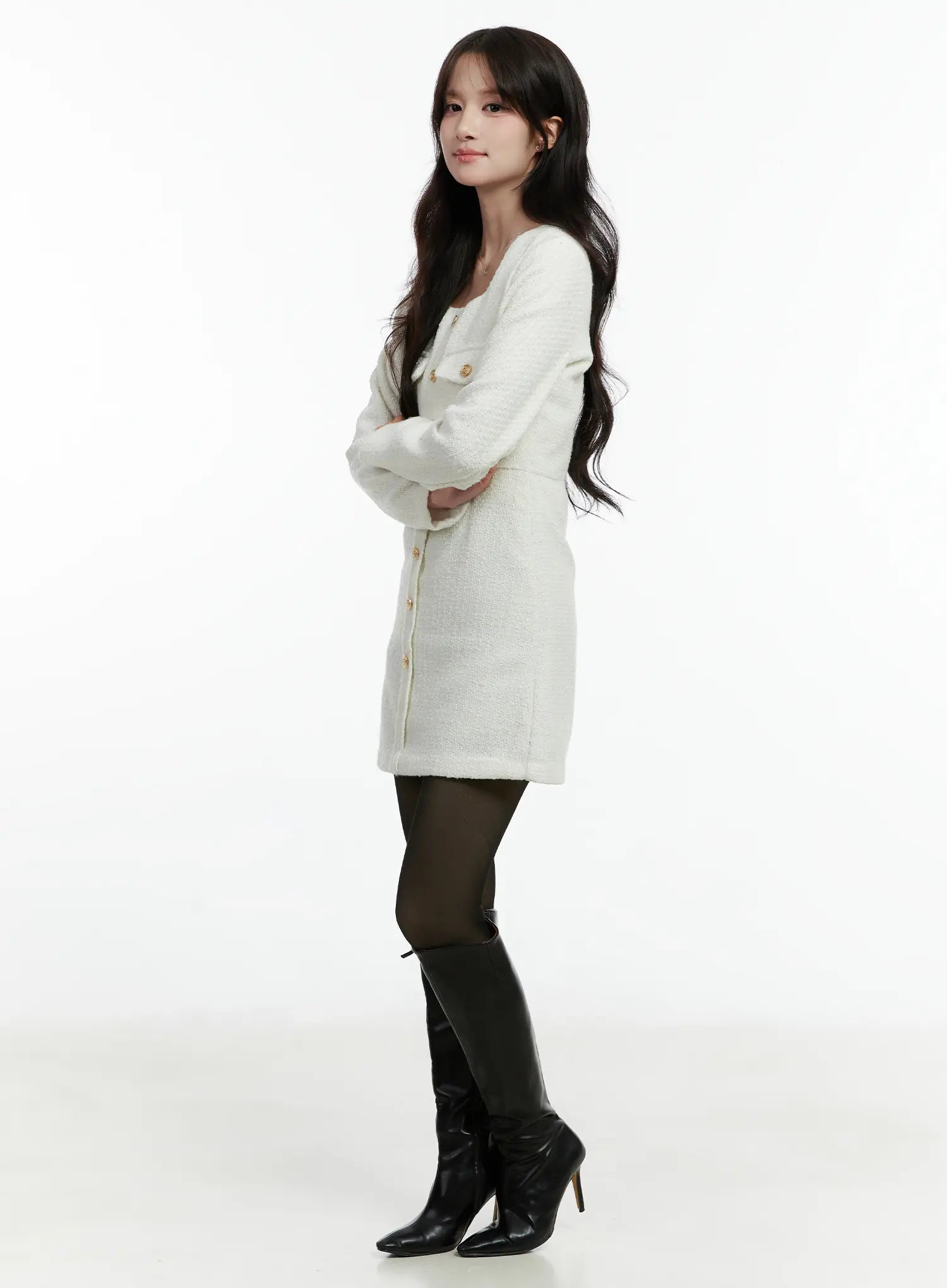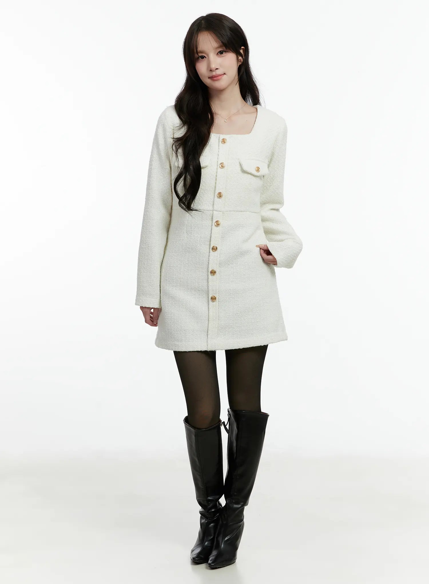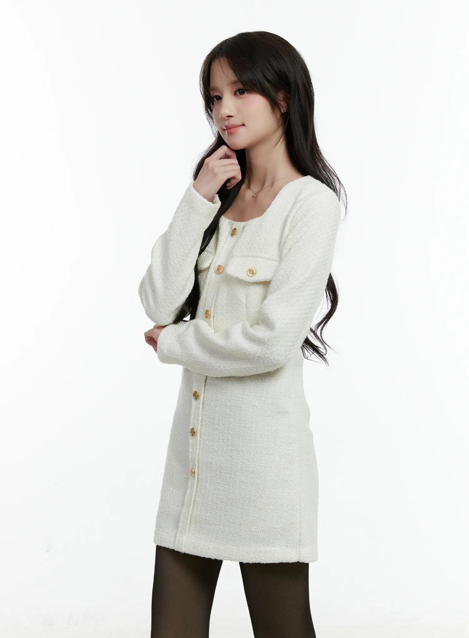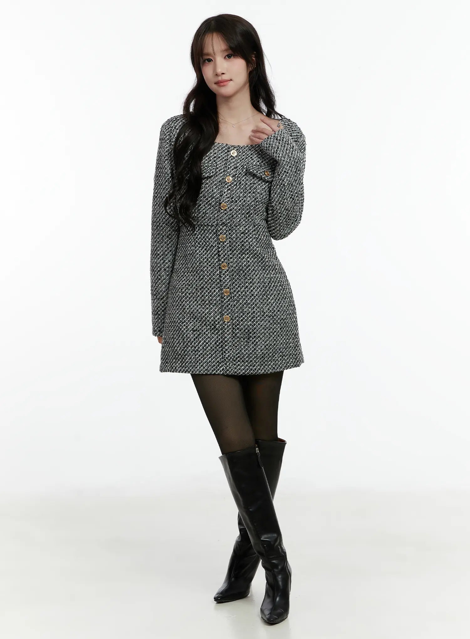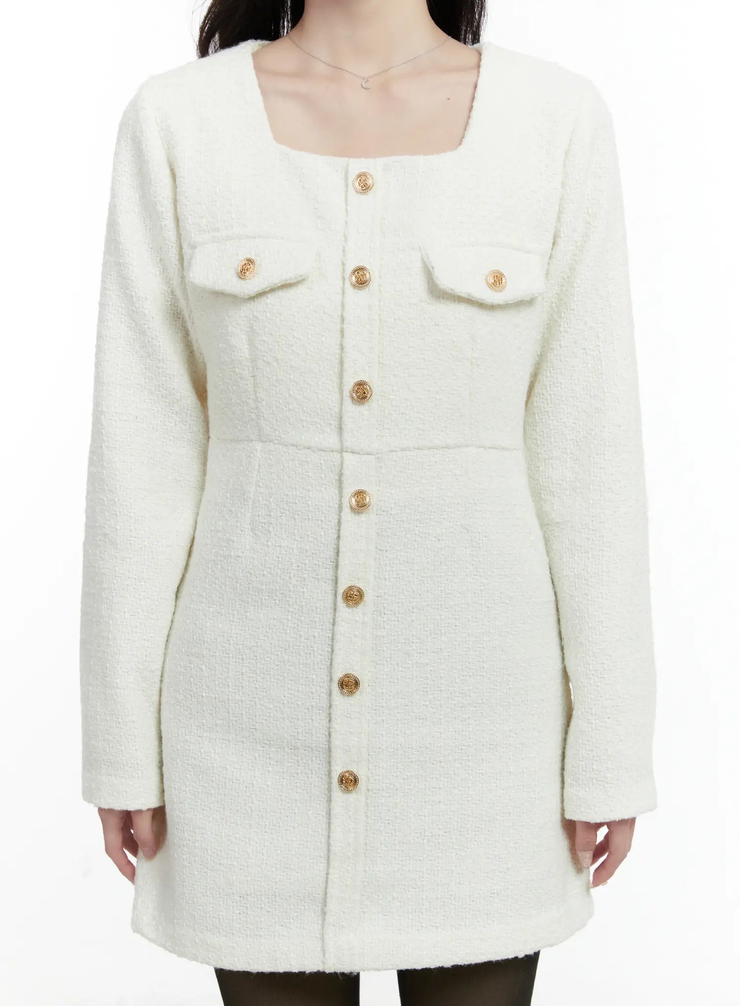 Tweed Button-Up Mini Dress CD523