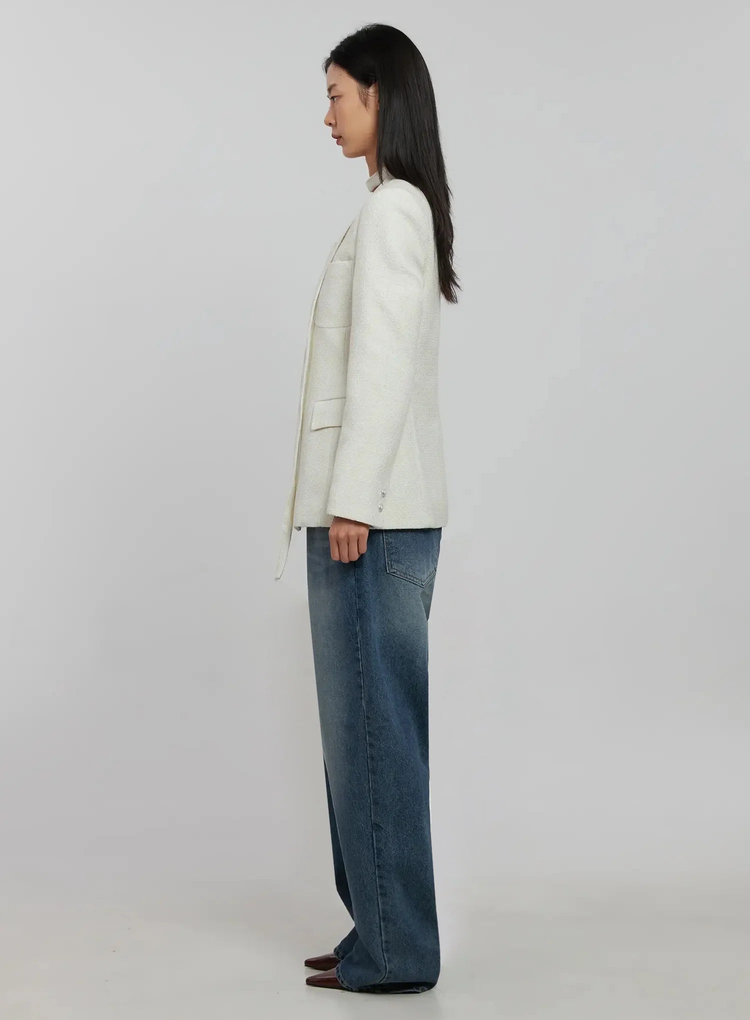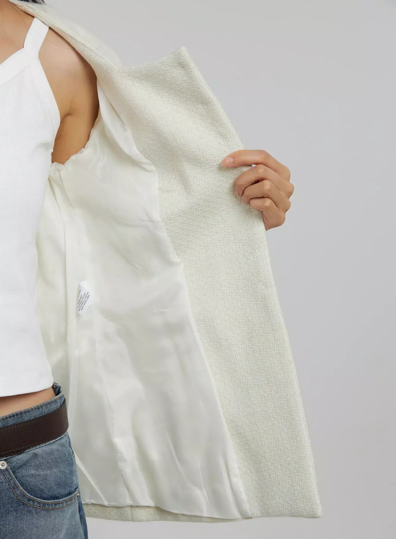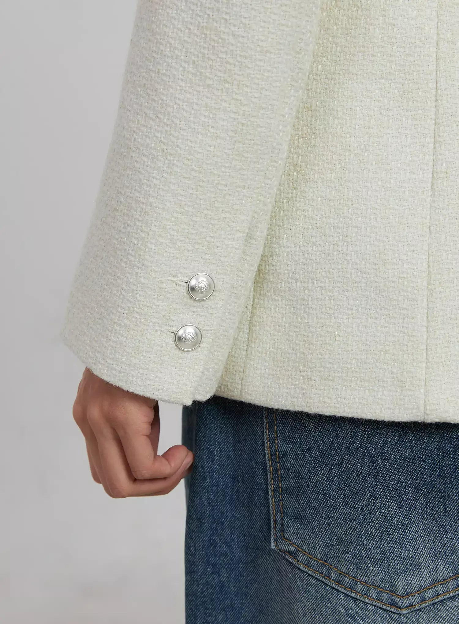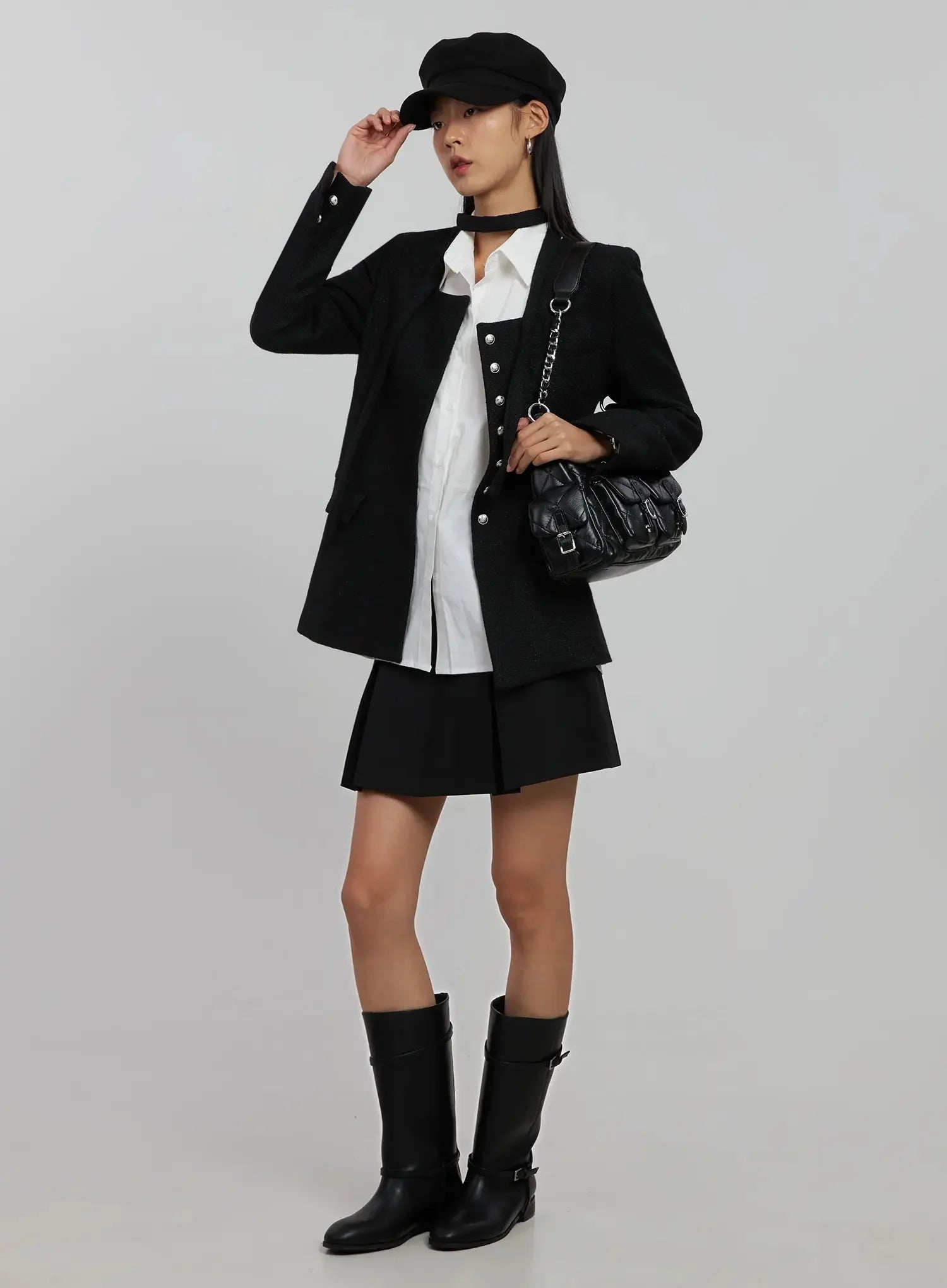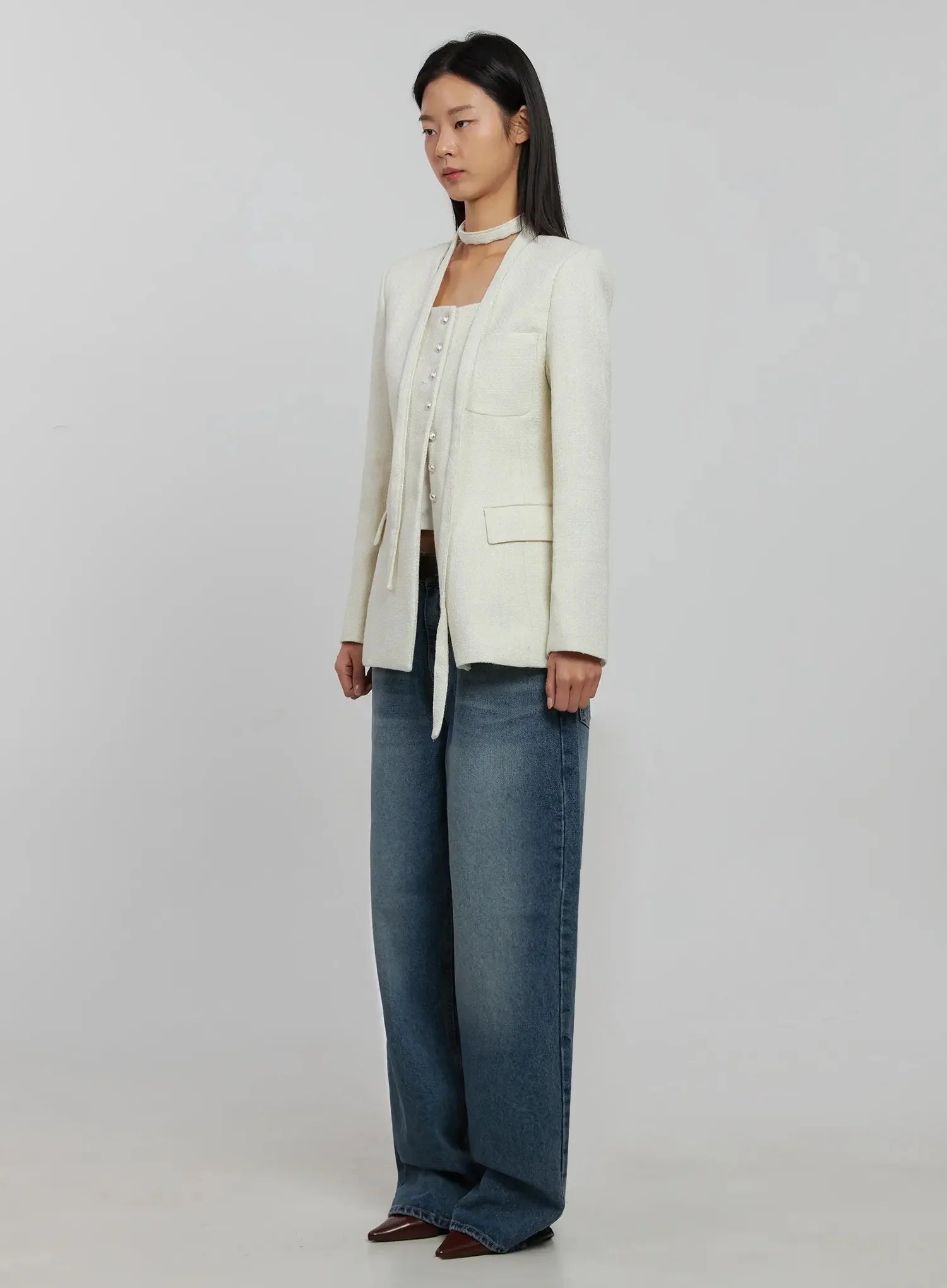 Tweed Square Neck Jacket Scarf Set IJ508