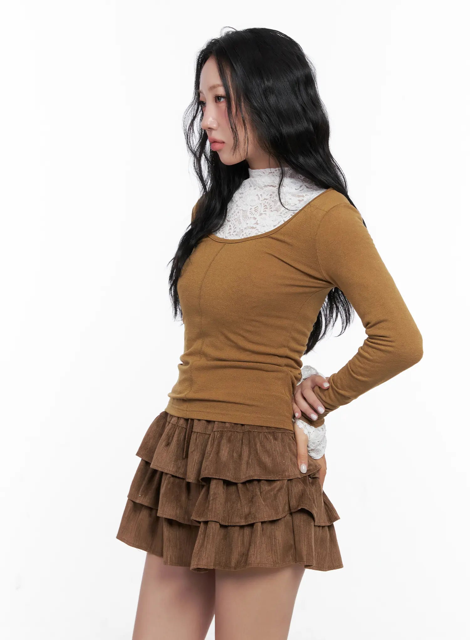 U-Neck Cutout Long Sleeve Crop Top CN514