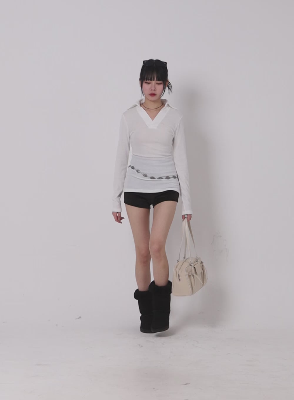 V-Neck Collar Long Sleeve Tee CJ419