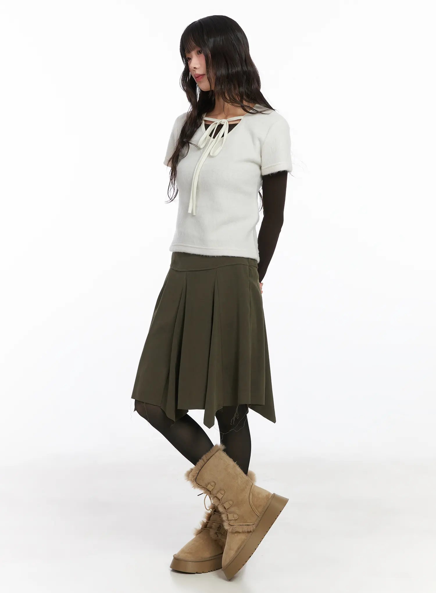 Vintage Asymmetric Flare Midi Skirt CD531