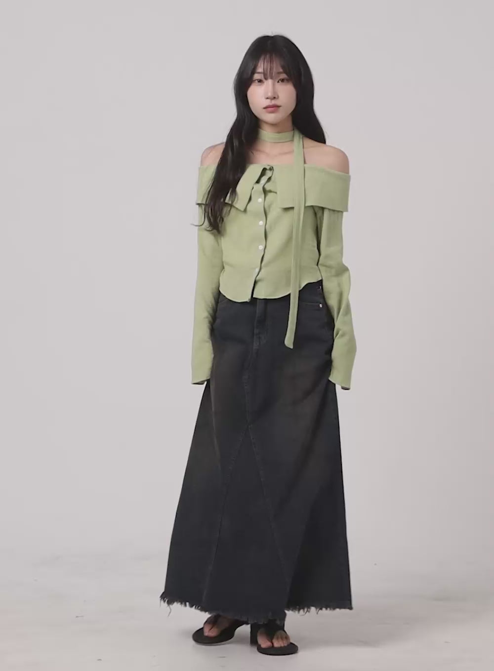 Vintage Rough Hem Denim Maxi Skirt CA403