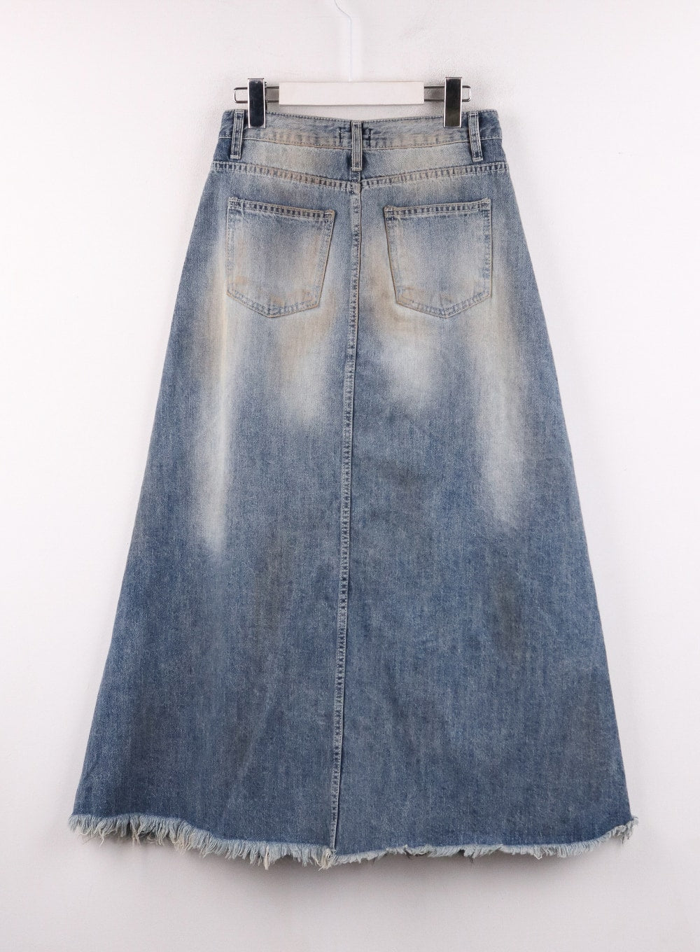 Vintage Washed Raw Hem Maxi Skirt CF405