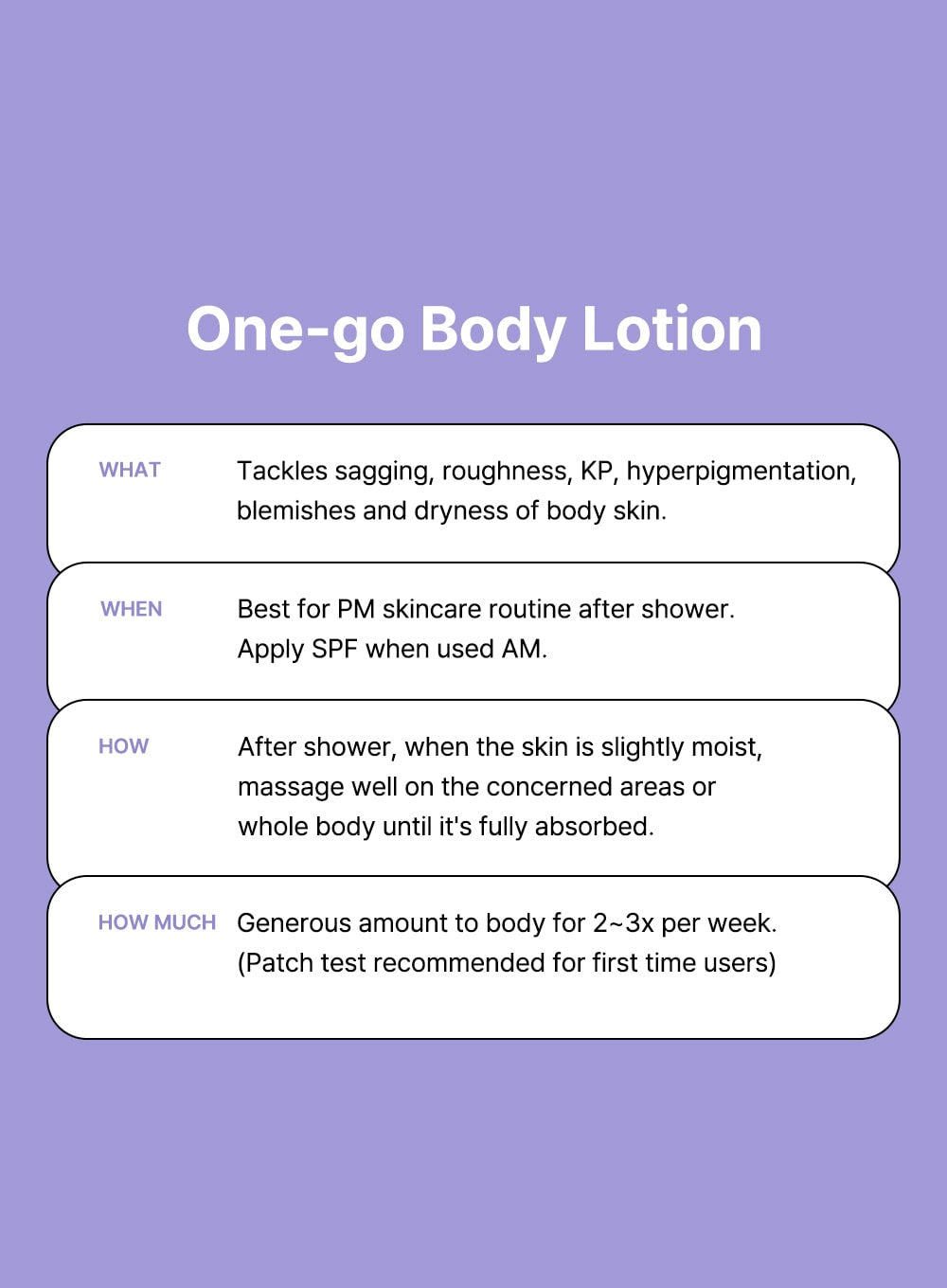 After shower, when the skin is slightly moist, massage well on the concerned areas or whole body until it's fully absorbed.