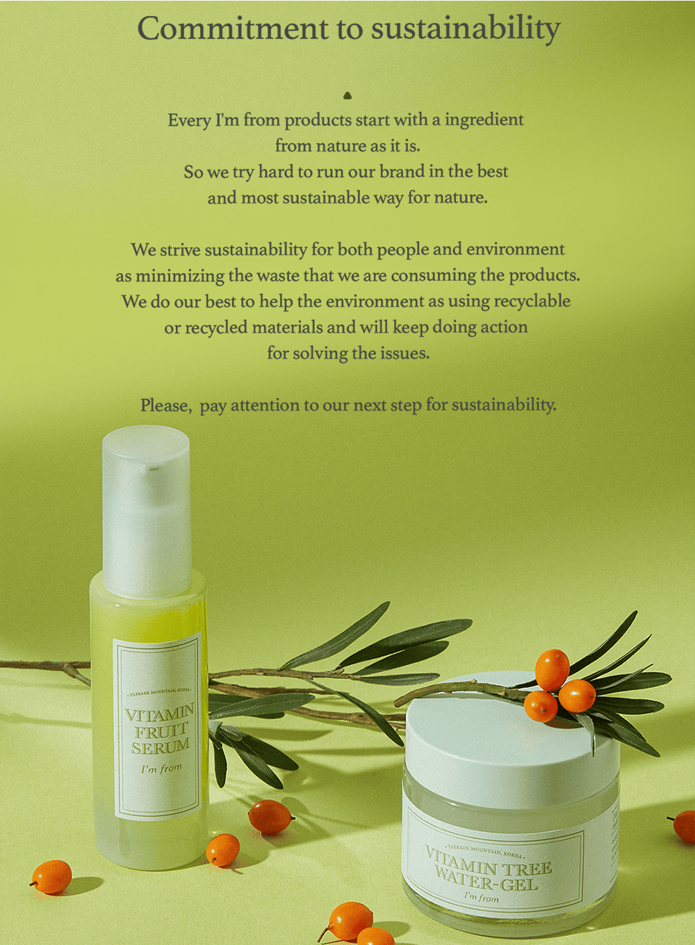 I'm From is a Korean skincare brand known for using natural ingredients to create gentle and effective products. They transparently disclose the source of their ingredients and feature products made with regional specialties.