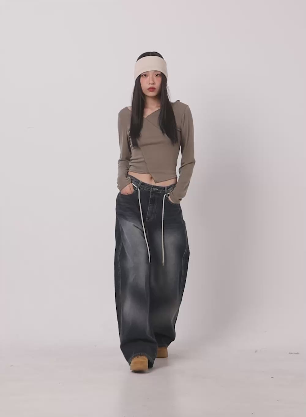 Vivian Washed Cotton Baggy Jeans CD409