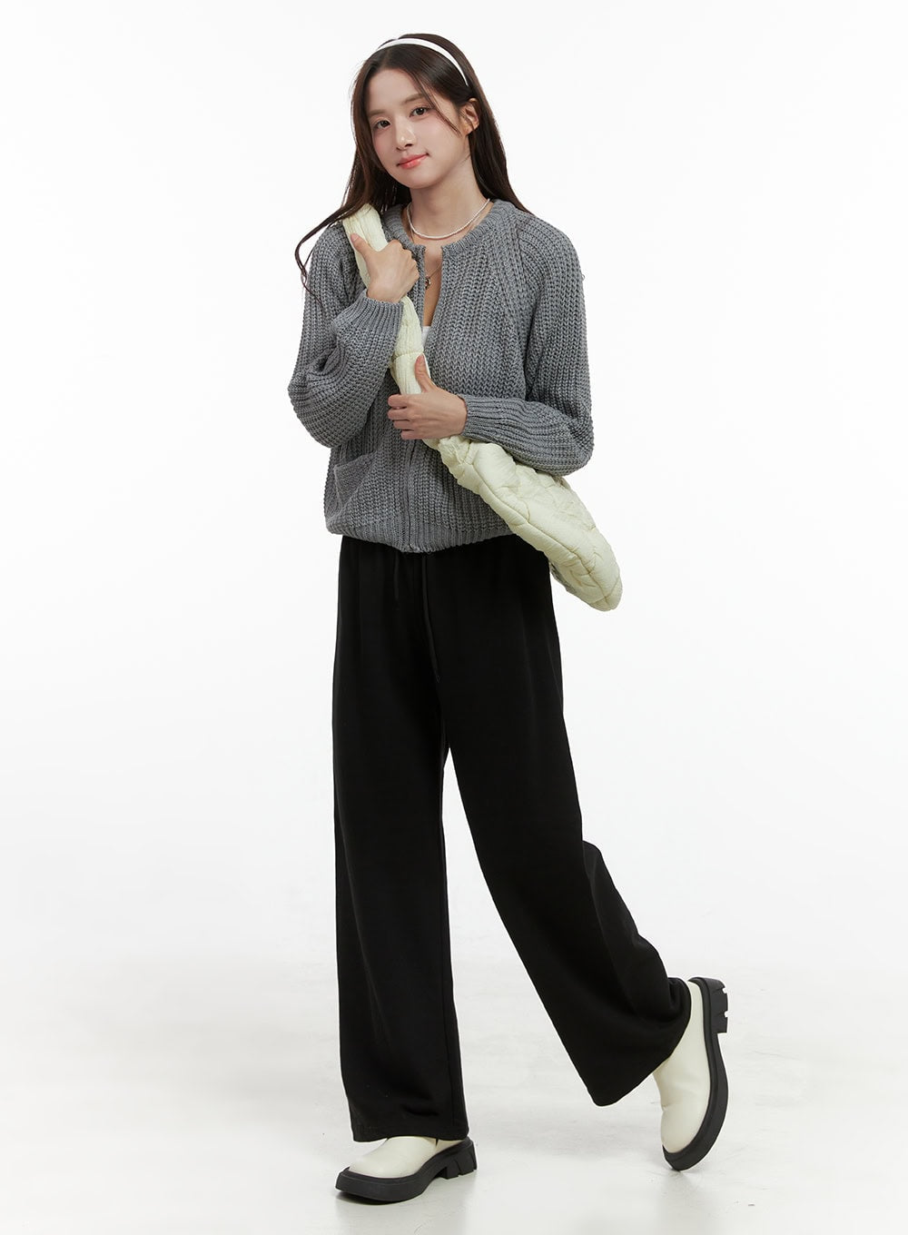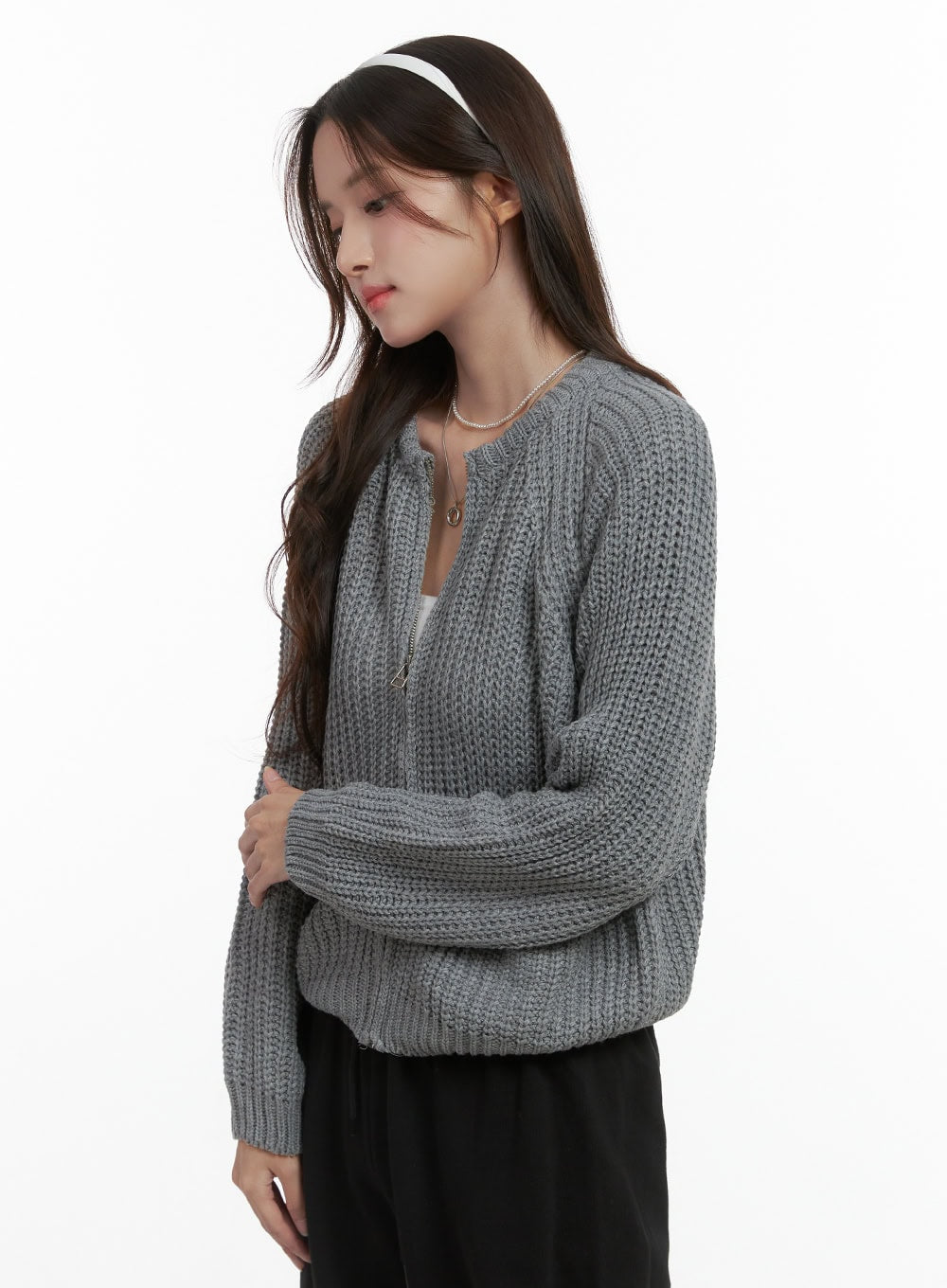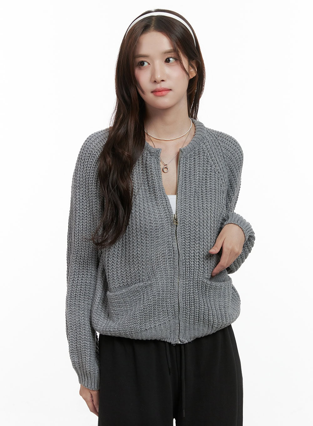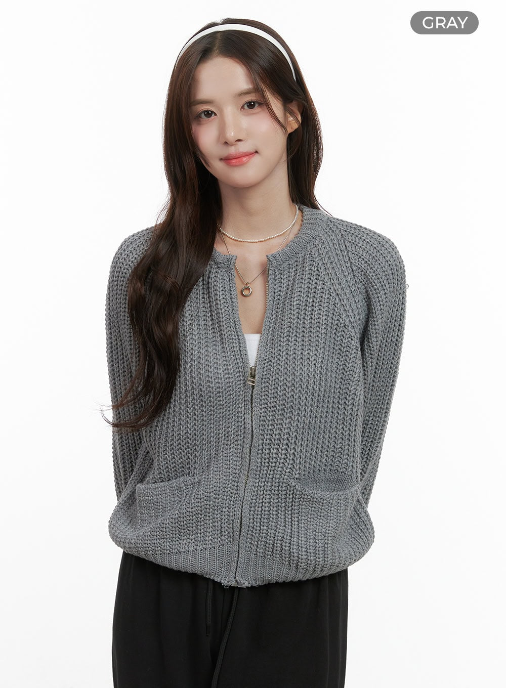 Warm Knit Zip-Up Cardigan OS416