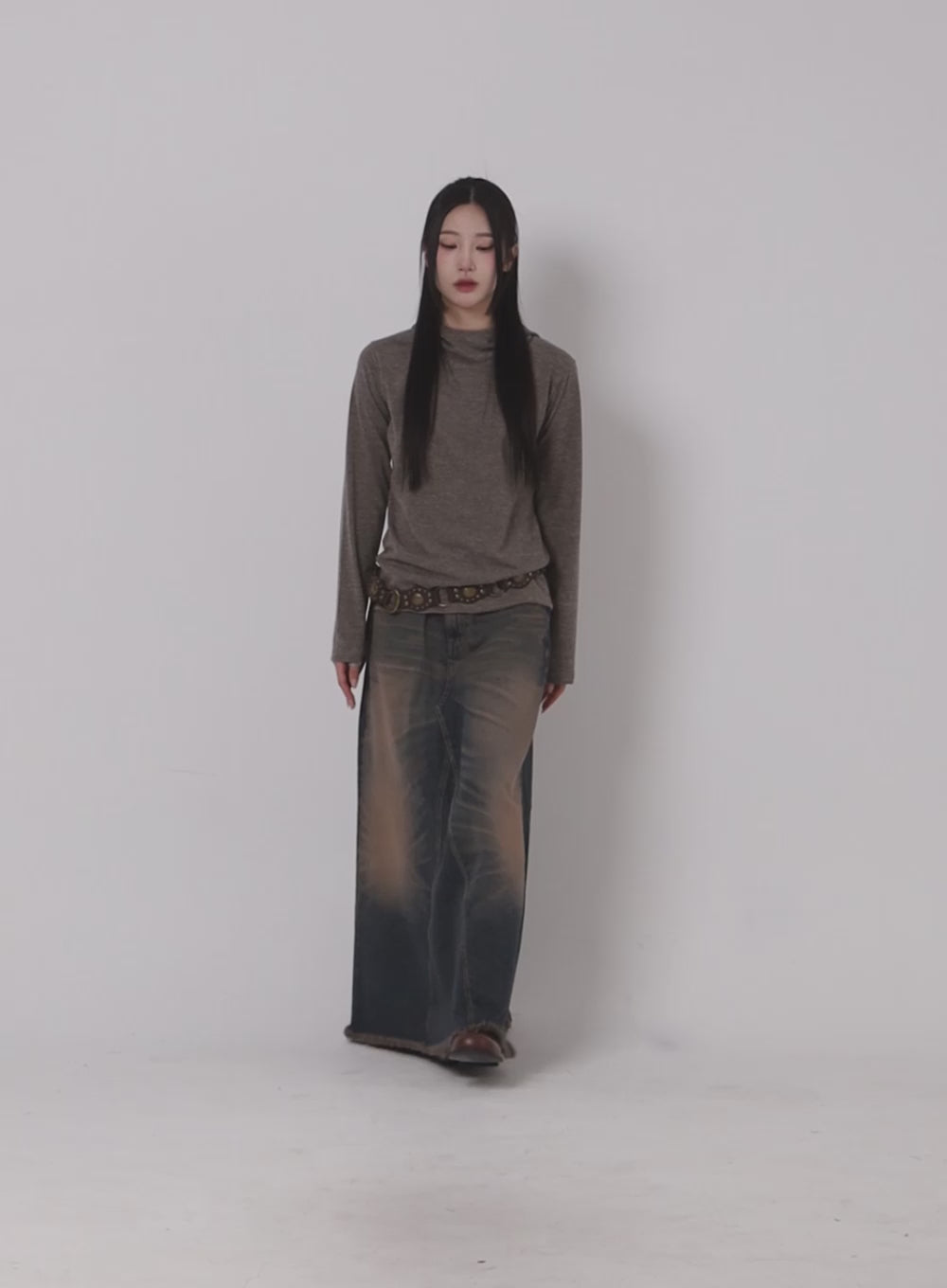 Washed Denim Maxi Skirt CJ418