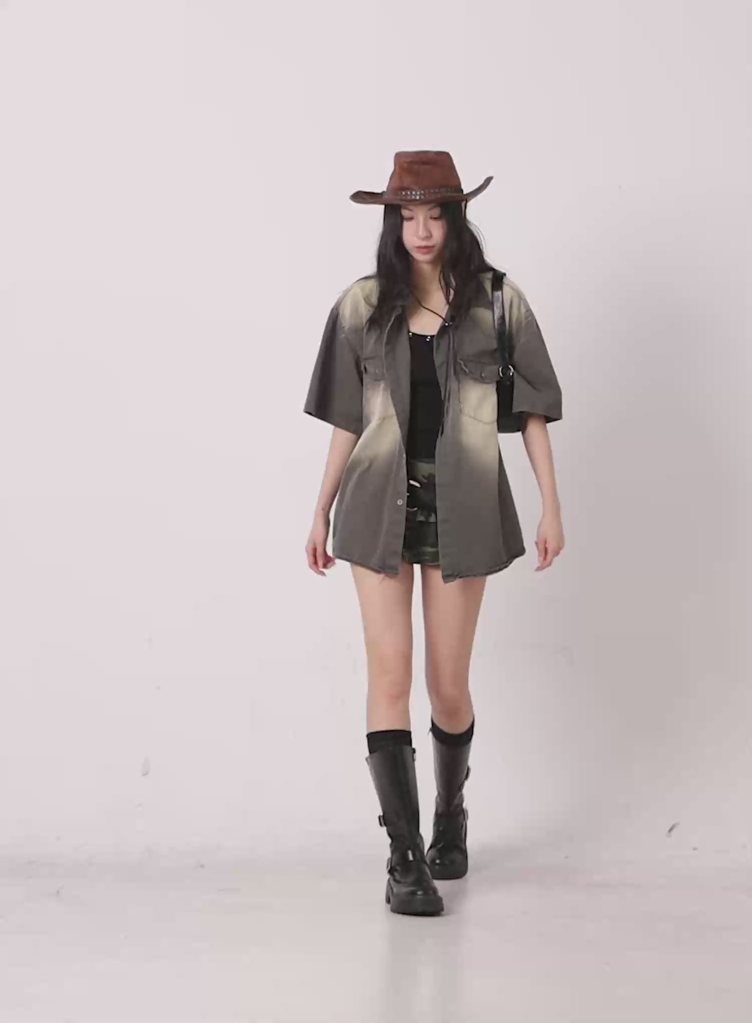 Washed Short-Sleeve Button-Up Shirt IG508
