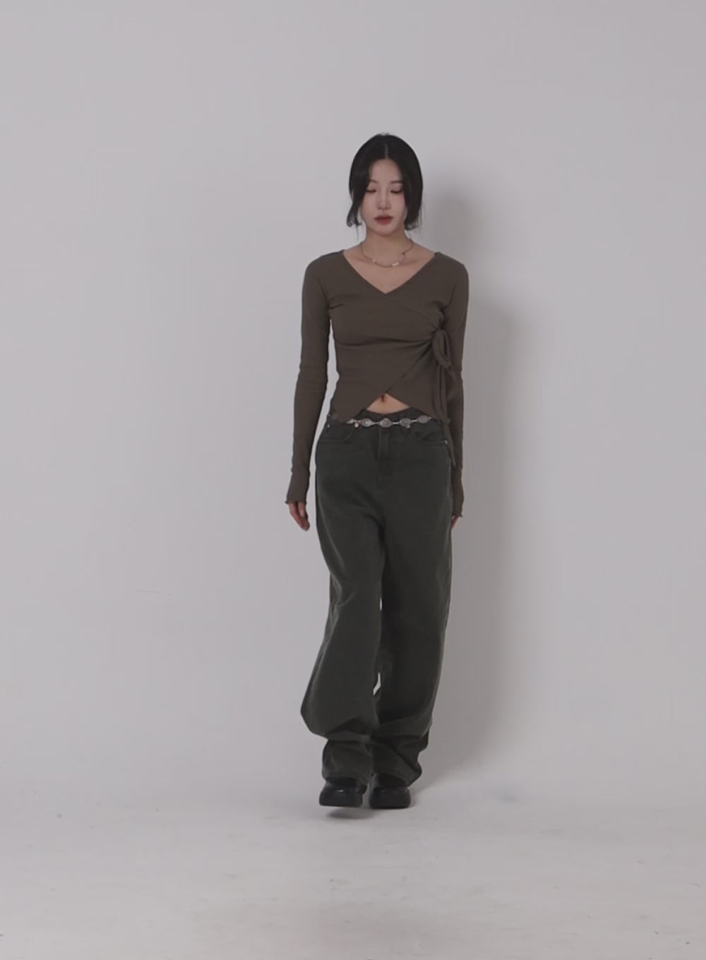 Model is wearing size S and the color Dark green.