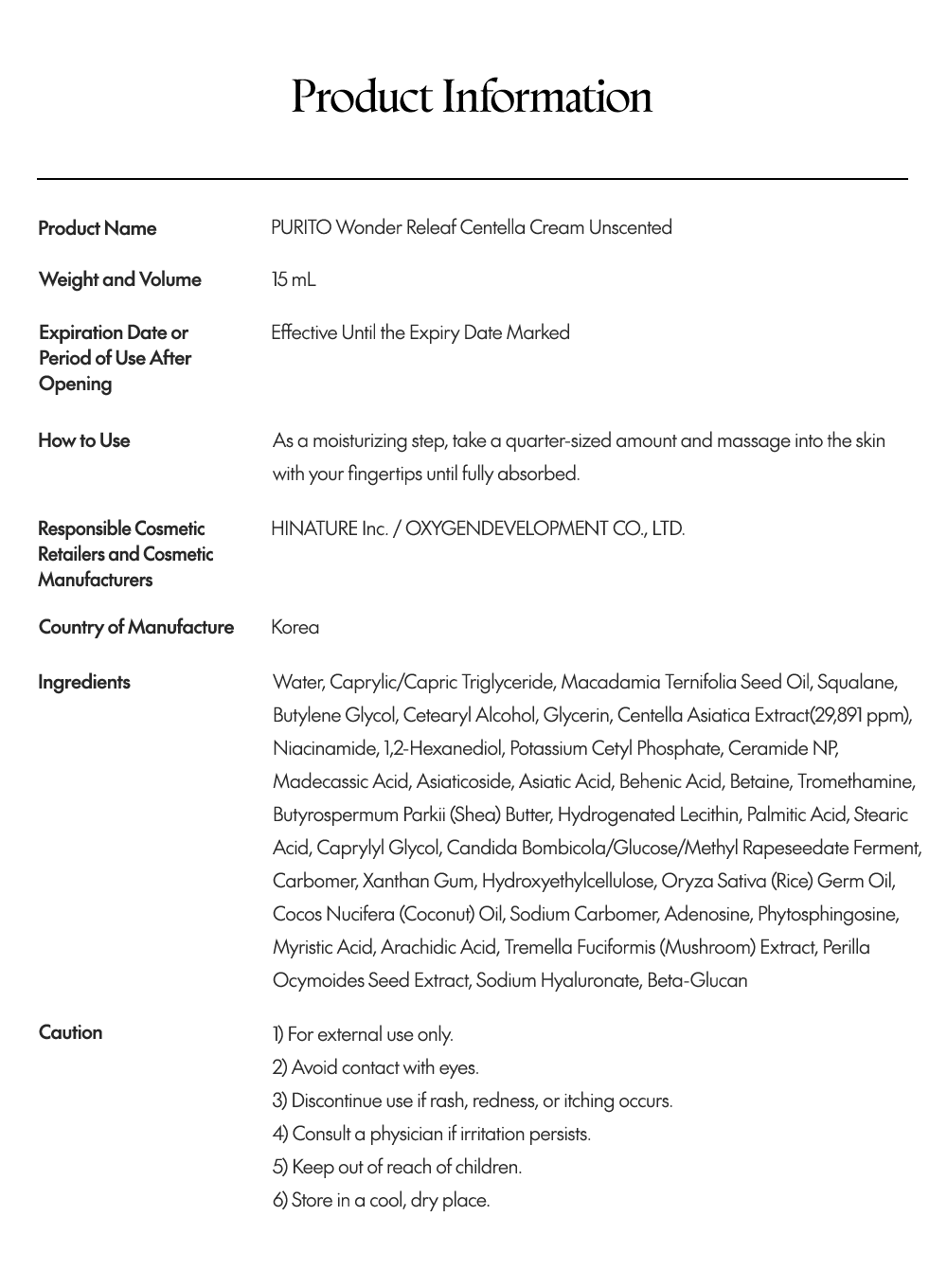 - highly concentrated face cream with 50% Centella Asiatica extract to soothe and strengthen the skin barrier while leaving the skin hydrated and supple
