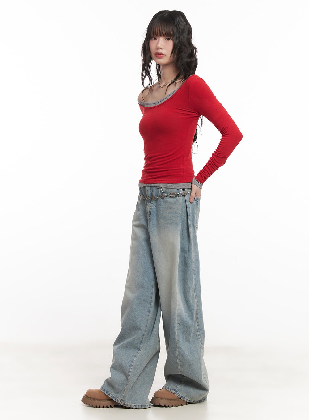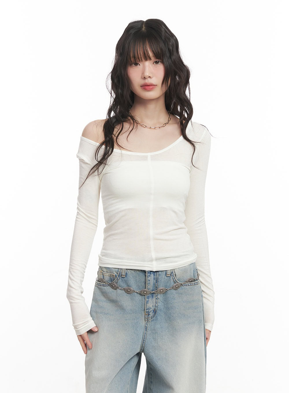 Wool-Blend One-Shoulder Long Sleeve Top CM520