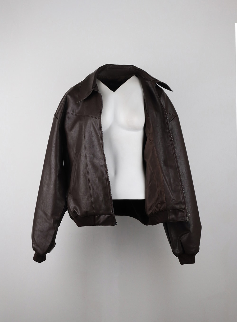 Zip-Up Faux Leather Bomber Jacket IJ403